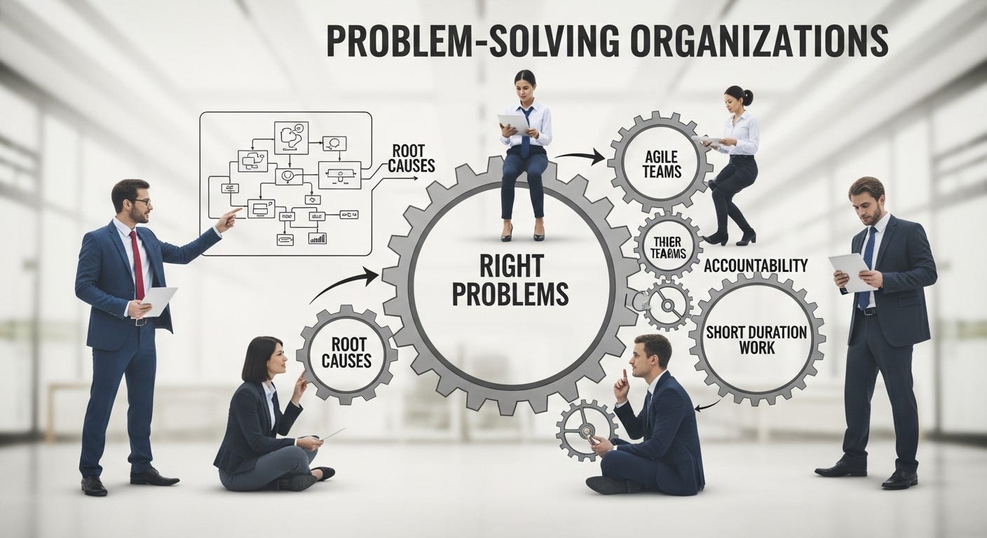 “As organizations seek to become clever and agile to address this new world, they take on the persona of problem solving organizations—a drive to be working on the right problems, addressing root causes, engaging teams around short duration work plans, and allocating responsibilities and timelines with accountability.”