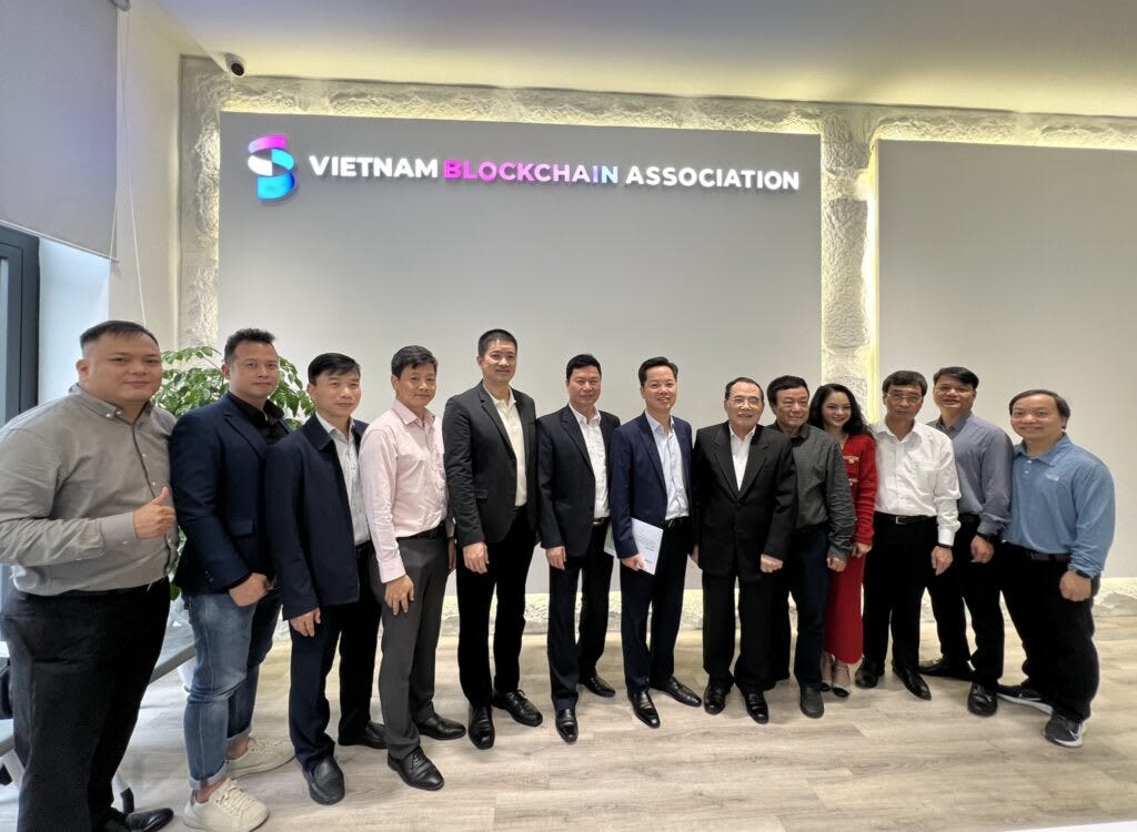 Members of the Vietnam Blockchain Association posing for a group photo.