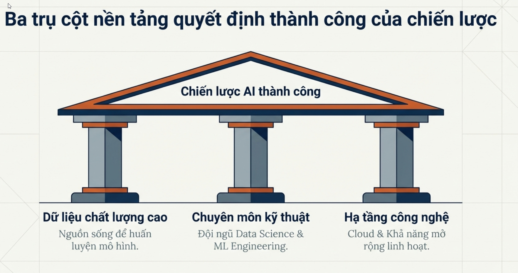 Để một chiến lược AI thành công, cần có sự hội tụ của nhiều yếu tố nền tảng, mỗi yếu tố đều đóng một vai trò chiến lược riêng.