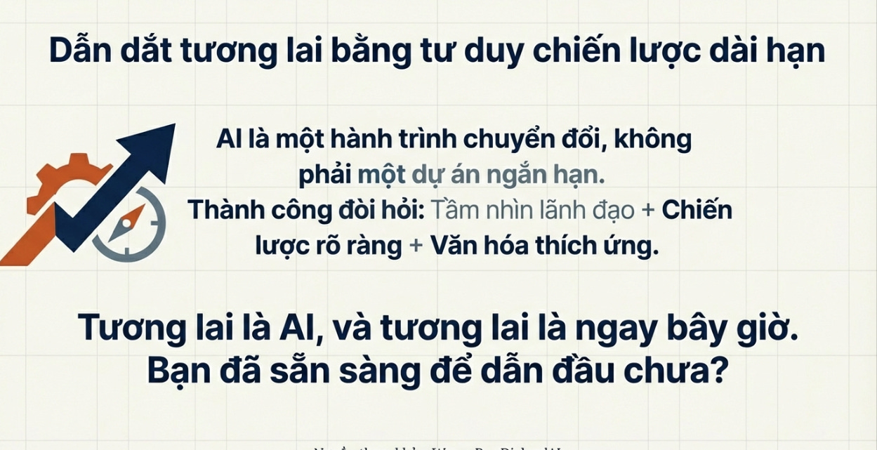 Việc triển khai thành công trí tuệ nhân tạo không đơn thuần là một dự án công nghệ, mà là một hành trình chuyển đổi chiến lược sâu sắc. Nó đòi hỏi sự kết hợp chặt chẽ và hài hòa giữa tầm nhìn lãnh đạo sáng suốt, một chiến lược kinh doanh rõ ràng, nền tảng quản trị vững chắc, và một văn hóa không ngừng học hỏi và thích ứng. Thành công không đến từ việc áp dụng các công cụ AI một cách riêng lẻ, mà đến từ khả năng tích hợp chúng vào huyết mạch của tổ chức để tạo ra lợi thế cạnh tranh bền vững.