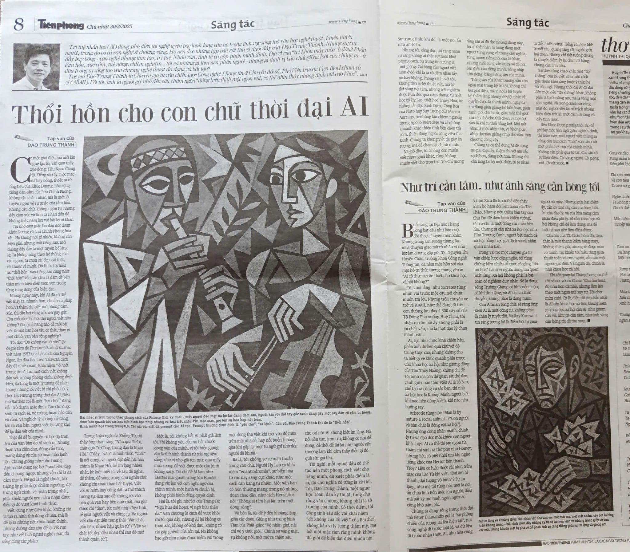 Thầy ơi bài báo “Thổi hồn cho con chữ thời đại AI” Thầy chụp trên mặt báo khi zoom lên vẫn khó đọc được đầy đủ, vậy mong Thầy sẽ có bài đăng này lại trên đây để độc giả “mạng” được đọc Thầy nhé!